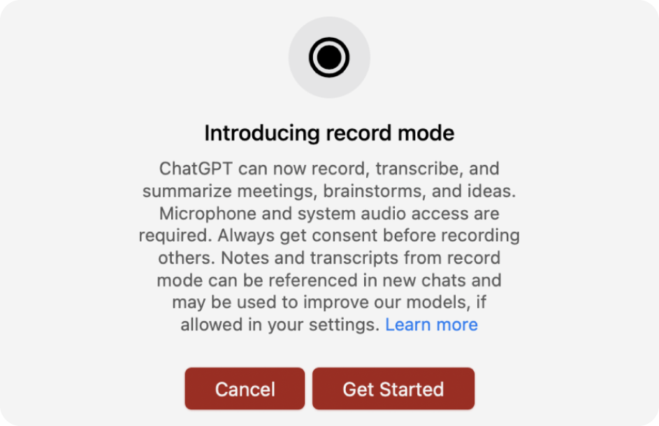 OpenAI acaba de lanzar el modo “Record” para usuarios Pro, Enterprise y Edu de ChatGPT en macOS.