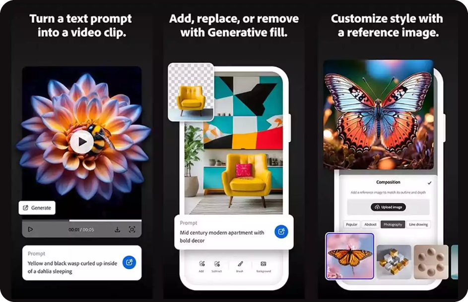 Todo lo que generes se sincroniza con Creative Cloud, y puedes usar modelos de OpenAI, Google Imagen o Runway.