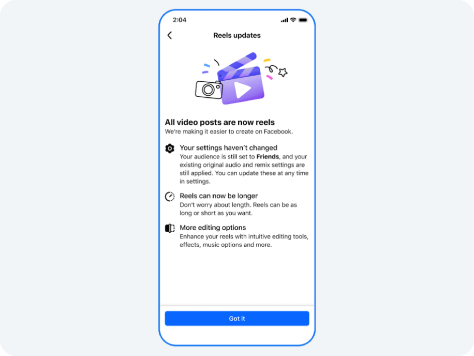 Meta anunció que todos los videos subidos a Facebook se convertirán automáticamente en Reels. Sin importar el largo o formato.