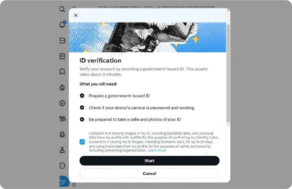 Y X avanza con nuevos elementos de confirmación de identidad para combatir bots. Se requerirá selfie y documento gubernamental.